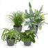 Mix aus 4 Zimmerpflanzen Chlorophytum - Cyperus - Phlebodium - Marantha - mit Potter Grau, Weiß oder Korb - Höhe 25cm
